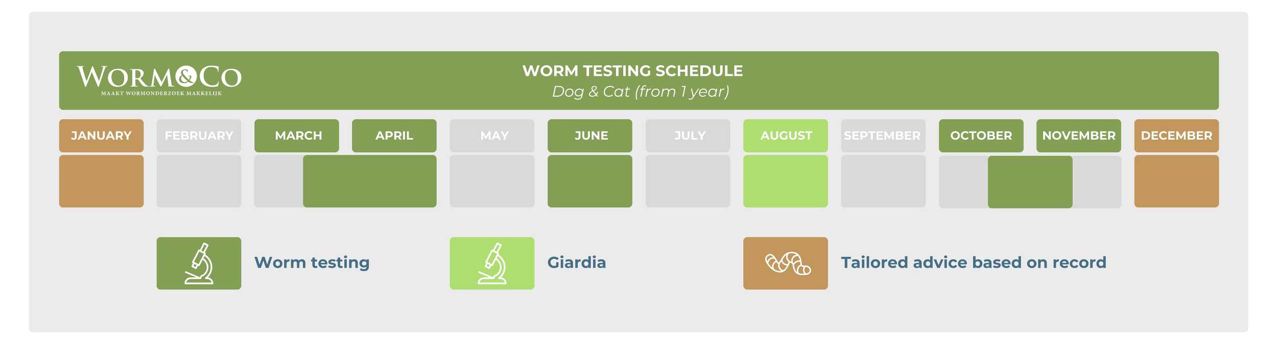 On this page, you will find schedules indicating the best times to perform fecal testing. You can also view diagrams that show how a worm infection occurs. Feel free to contact us if you have any questions.